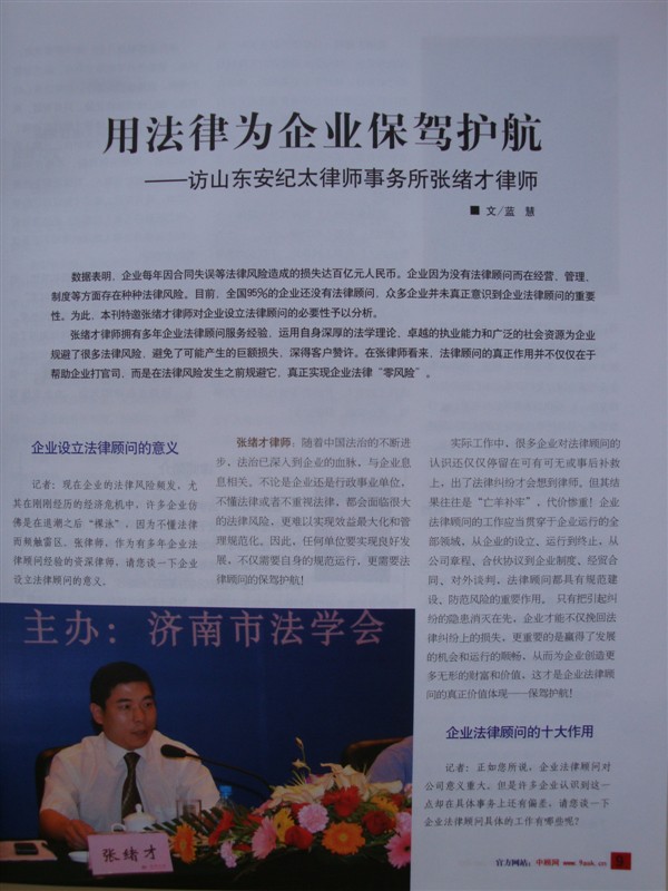 秀律师”及多家专业网站“济南首席律师”荣誉称