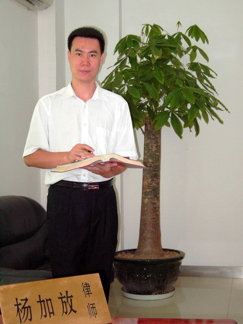 杨加放律师,乘着“加速改革开放”的春风, 1998年从江西来到东莞,至2011年前一直在广东赋诚律师事务所从事专职律师工作,十几年来积累了丰富的实战经验。2012年,杨加放开办了个人律师事务所“广东万言律师事务所”,携手东莞法律业界精英,开始新的腾飞。 杨加放律师一直注重自身能力的提高,在南昌大学获法学学士学位后,又参加了中国政法大学民商经济法学院在职研究生班学习。因为律师应该善于学习,应该能在有需要的情况下一夜之间成为某一方面的专家,应该以自身具有的高素质而不仅仅是靠社会背景来为委托人提供服务。 现代社会的竞争,比的就是谁能最快、最长久地 获得客户的信任,律师尤其应当以诚信为本。杨加放律师以忠实于法律、忠实于委托人为最高原则,只要接受了当事人的委托,就全心全意地为最大化实现委托人合法权益而努力,绝不辜负委托人的信任。 律师执业证号:14419200010433780 学历:法学学士 邮箱:20508618@.COM 电话:0769-81667222-8303 手机:13825758498 18025229120 广东万言律师事务所地址: 东莞市长安镇霄边帝逸酒店大厦北座首层1-3号& 三层(东莞市第二人民法院对面) TEL:0769-81667222;FAX:81667322